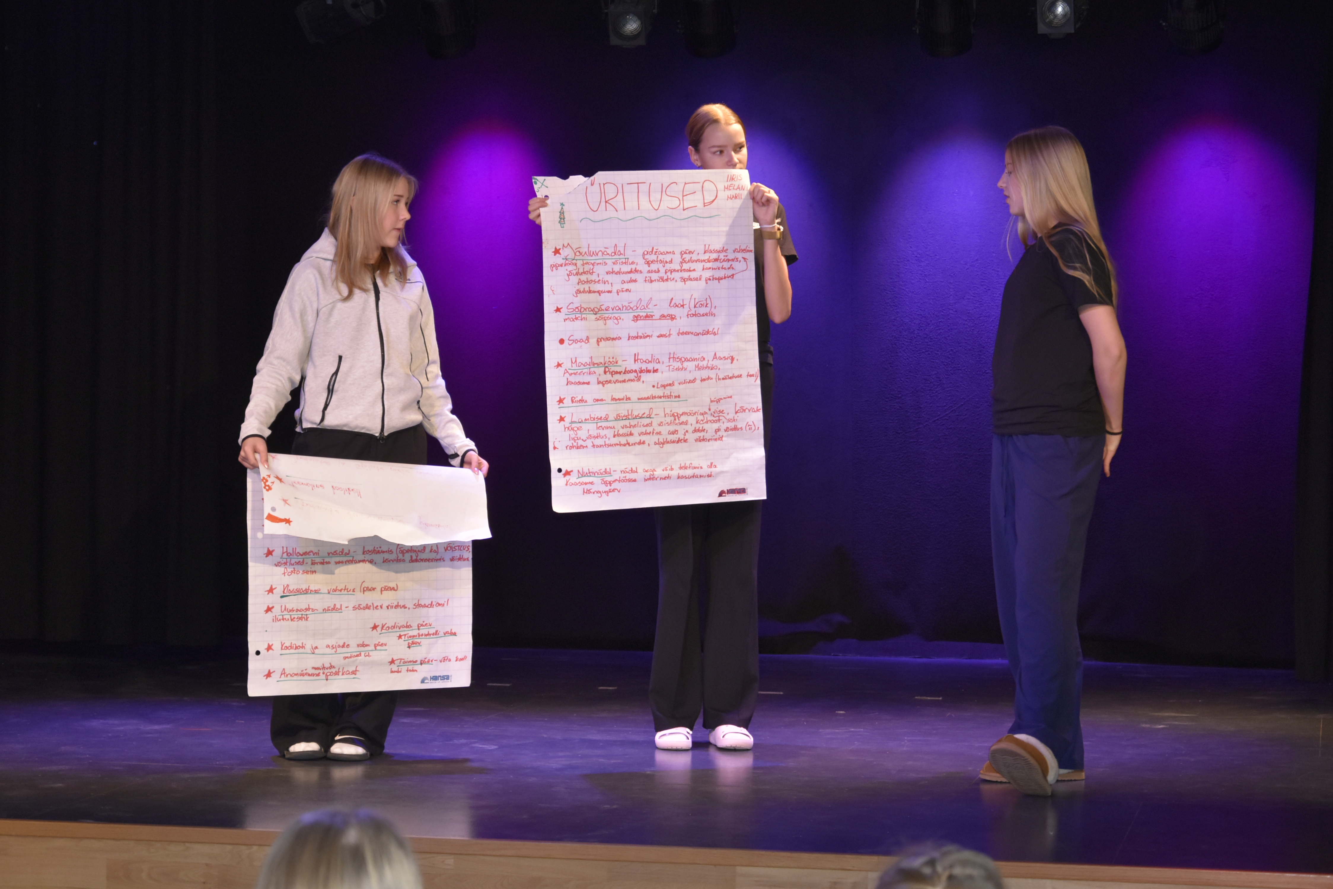 Seejärel võeti ette juba traditsioonilised maailmakohviku stiilis arutelulauad. Oleme ju sellest aastast ka Arutlev Kool! Teemadeks olid sel korral huviringid, üritused, õpetajad, aktiivilaager ja UNO-laud. Iga laua eestvedajateks olid õpilasesinduse liikmed, kes pärast tegid ettekandena kokkuvõtte juttudest, mis lauas peamisteks aruteludeks kerkinud olid.