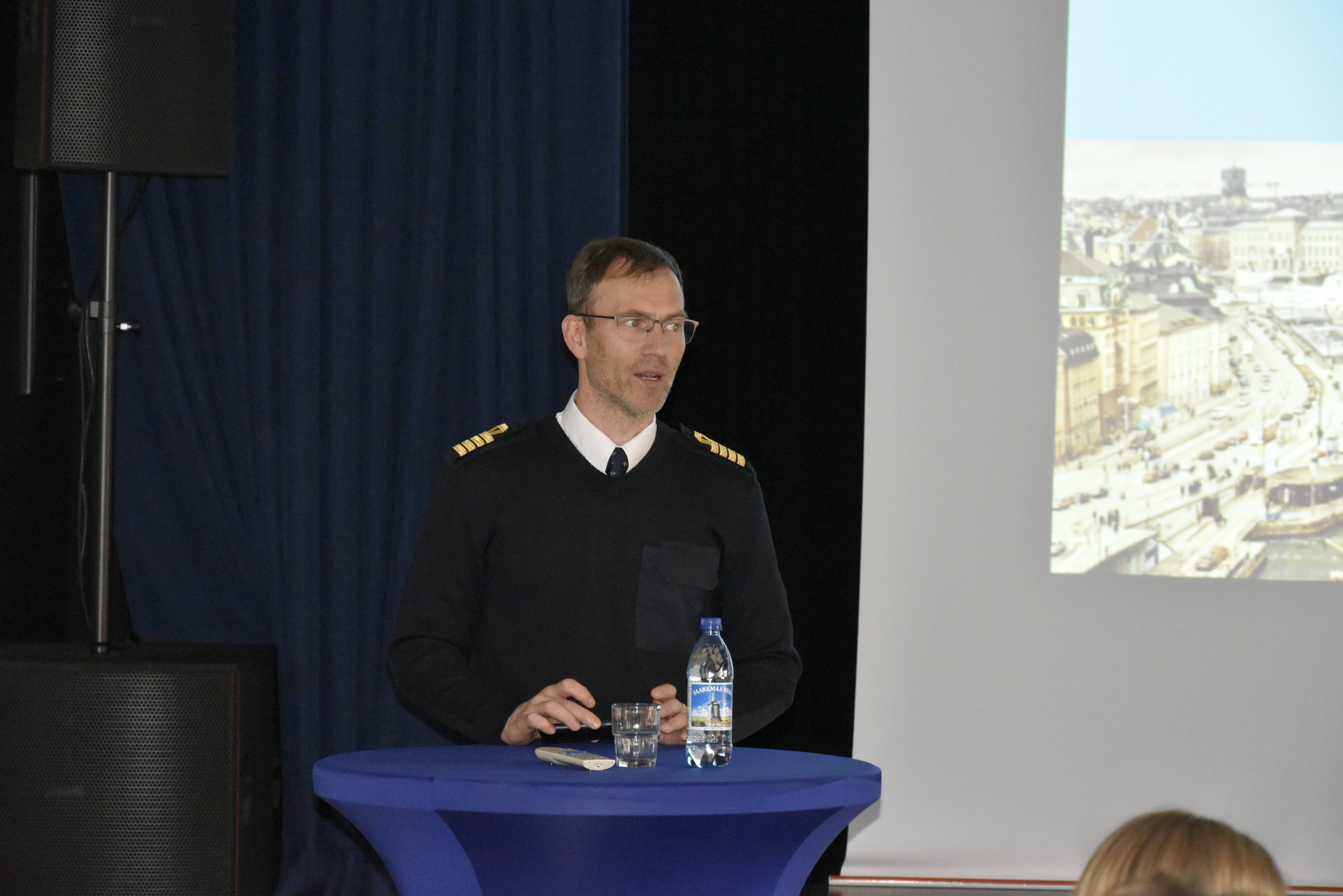 Pärast mänge oli aeg esimese külalise jaoks, kelleks oli parvlaev Tõllu kapten Indrek Kalamees. Saime teada, kuidas kapteniks saada, mida selleks tegema peab ning milliseid väljakutseid merel töötamine pakub. Küsimuste voor kujunes pikaks, ennekõike just asjalike viiendike huvi tõttu. Tänutäheks andis ÕE esimees Säde Kalamees üle koolimeenetega kinkekoti.