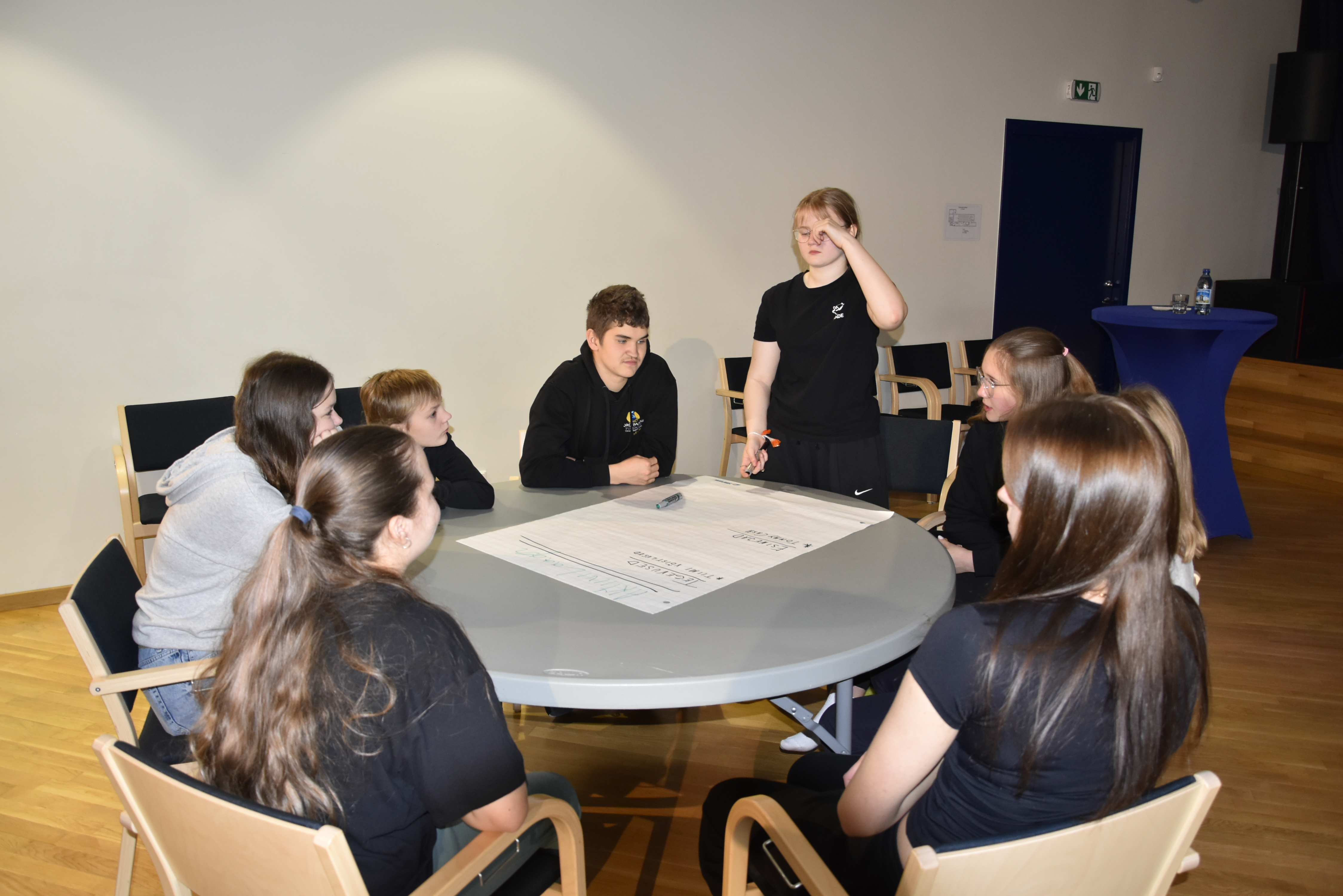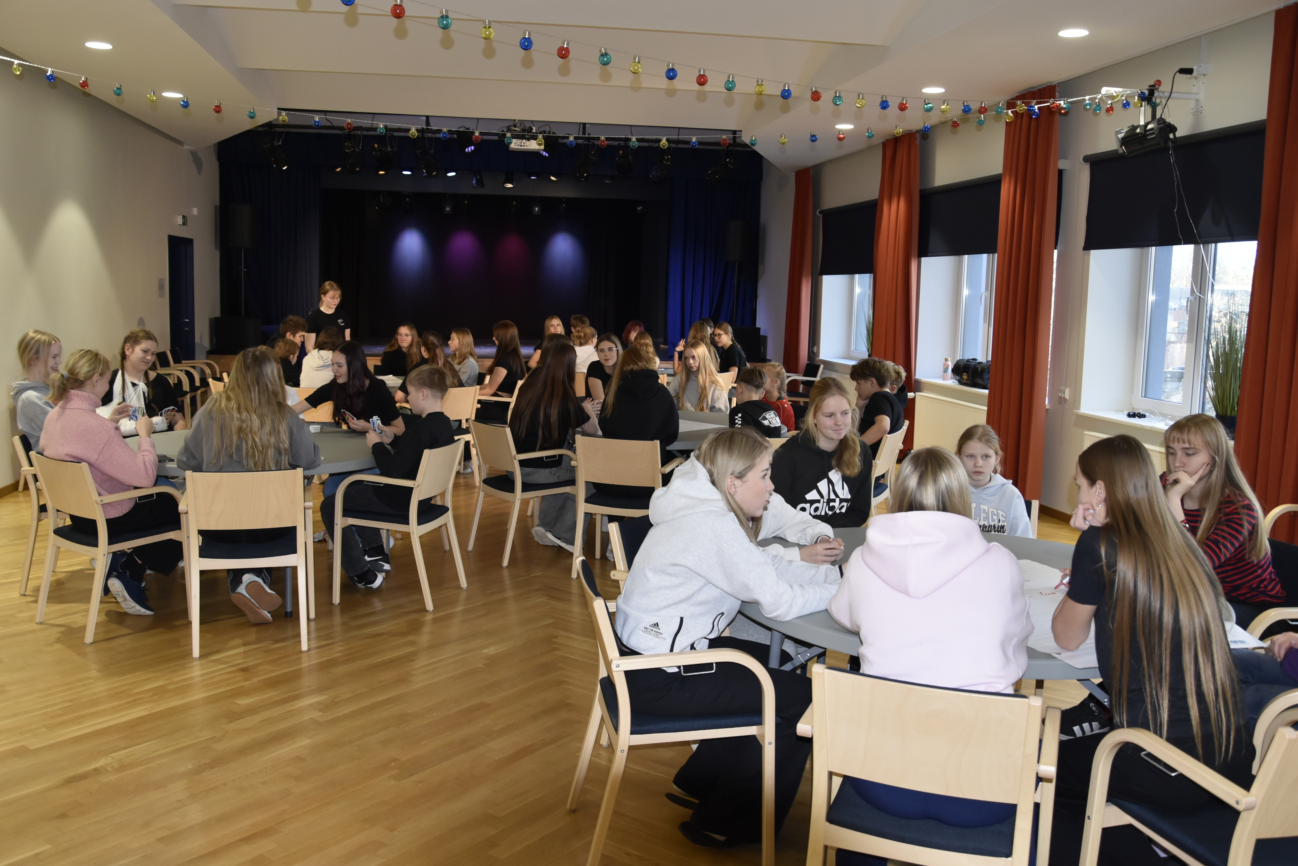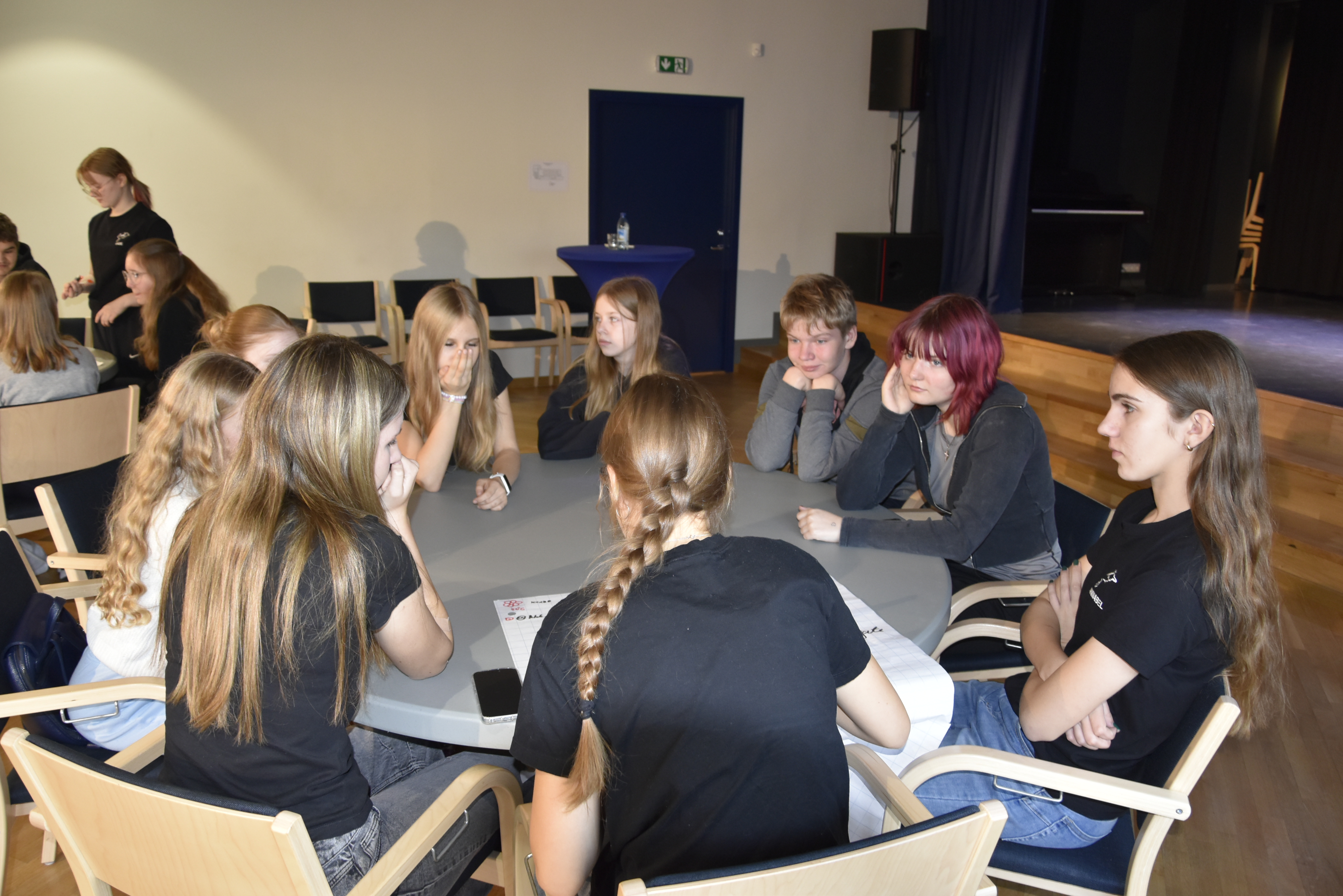 Seejärel võeti ette juba traditsioonilised maailmakohviku stiilis arutelulauad. Oleme ju sellest aastast ka Arutlev Kool! Teemadeks olid sel korral huviringid, üritused, õpetajad, aktiivilaager ja UNO-laud. Iga laua eestvedajateks olid õpilasesinduse liikmed, kes pärast tegid ettekandena kokkuvõtte juttudest, mis lauas peamisteks aruteludeks kerkinud olid.